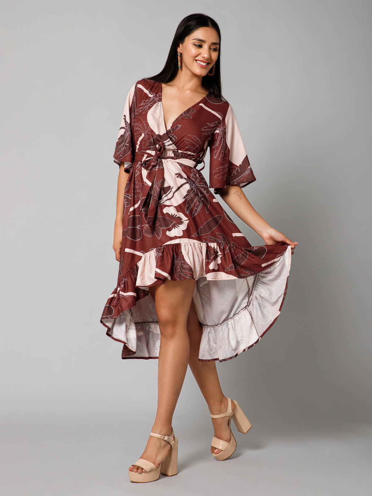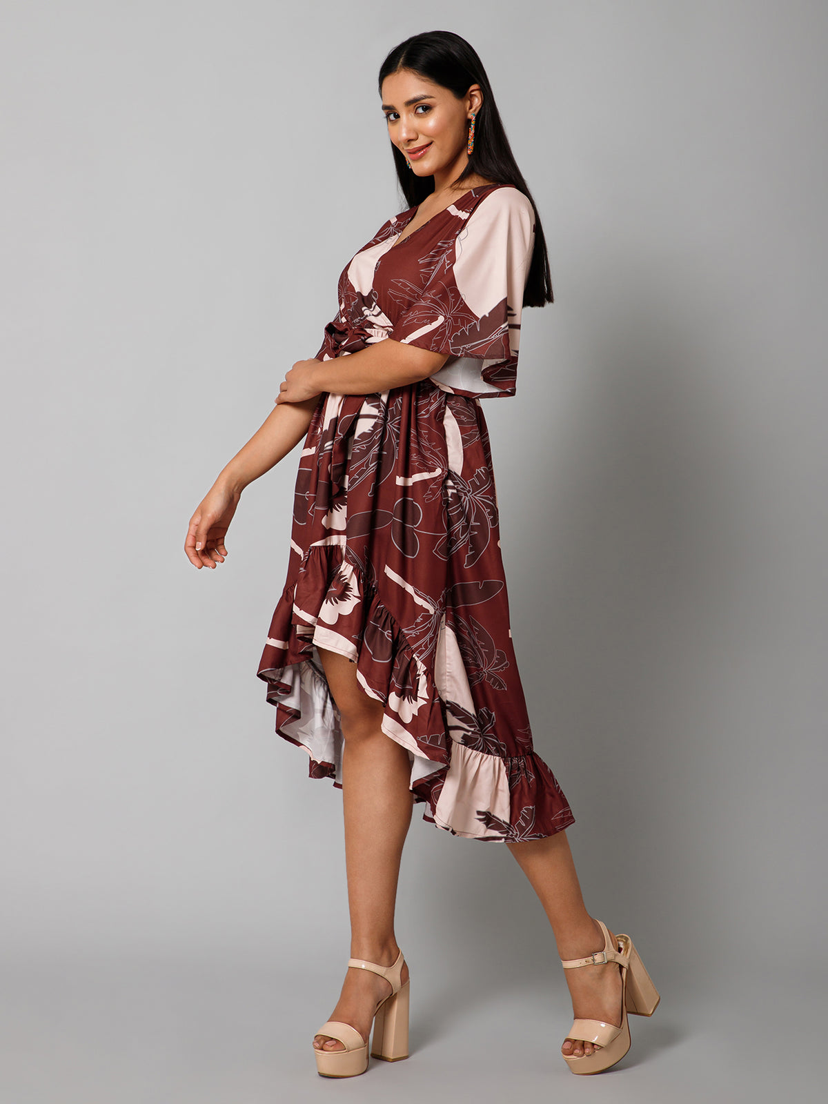 CK Misa Brown Tropical Sun Print Wrap Dress